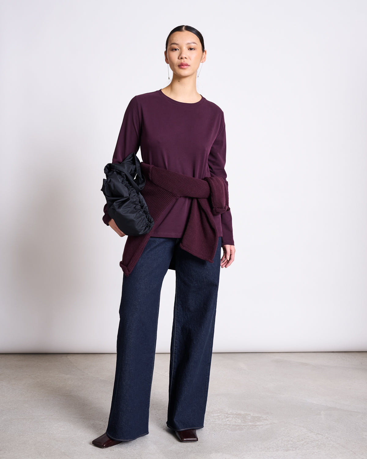 Let’s do loose fit.Our beautiful and basic longsleeve is called BOY. It’s loose fitted and looks a little bit like you’ve stolen it from your boyfriends wardrobe.Made from our signature very soft and elastic organic cotton fabric, that our supplier calls ‘Angel Skin’. You will know why as soon as you feel it.