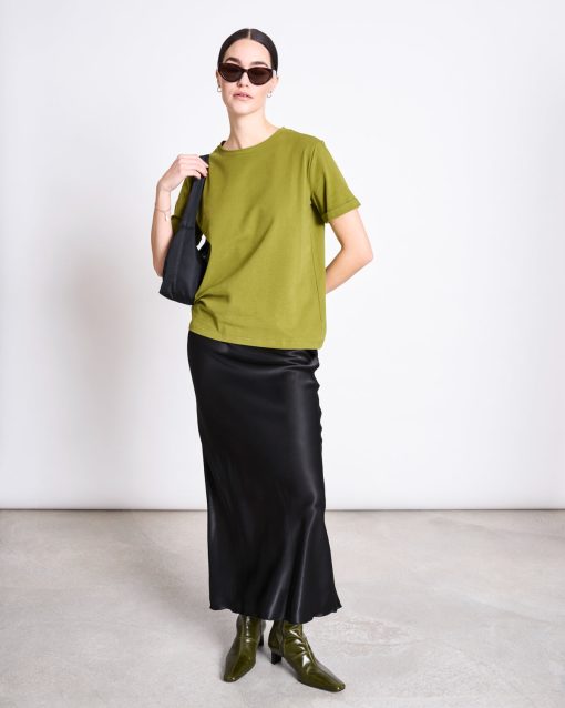 LET’S DO LOOSE FITThis beautiful T-shirt is called BOY. It features a classic round neckline, is slightly oversized, and has that effortless look as if you’ve borrowed it from your boyfriend’s wardrobe.BOY is made from a very soft and elastic organic cotton fabric, which our supplier calls ‘Angel Skin.’ You’ll understand why as soon as you feel it.