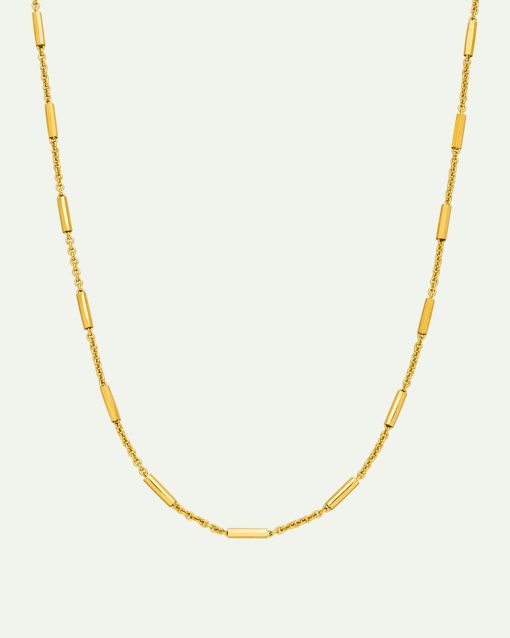 Welcome the most beautiful and sustainable jewelry from DEAR DARLING BERLIN!Fall in love with this versatile, elegant chain design for every day and special occasions.The classic anchor necklace is surrounded by fine bars that are spread over the entire chain and provide shiny accents. You can wear this accessory wonderfully on its own – from casual with a T-shirt, blouse or sweater, to an elegant going out outfit. For a stylish layering look, you can easily combine it with other jewelry.Length: 50cm, Width: 1,2mm, Material: Recycled 925 Sterling Silver, 18k Gold Plating / Rhodium. Responsibly manufactured in Pforzheim, Germany. Â