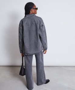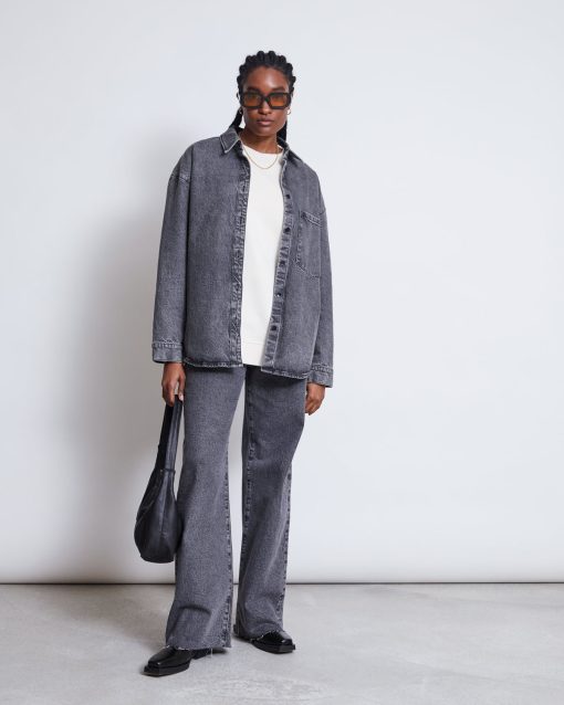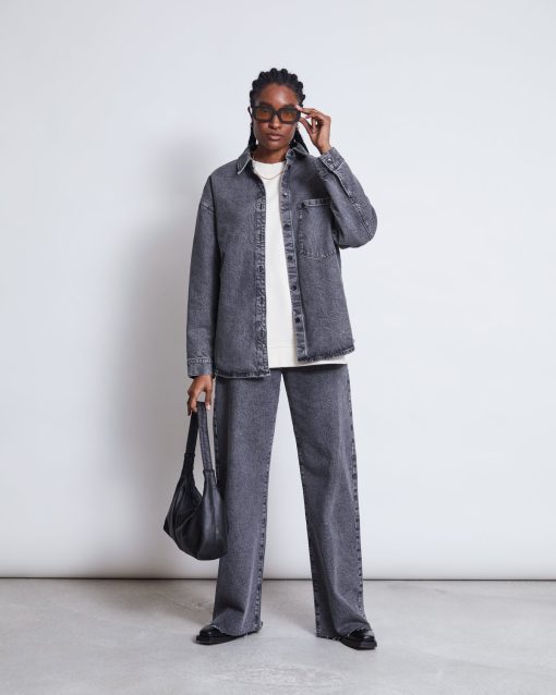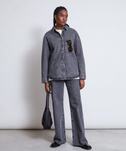 We are here for all over denim looks. If you want to. This is our new denim shirt SOLACE. The shirt comes in light blue or light grey and is made of 99% organic cotton and 1% elastane. It features one chest pocket and buttons in the front for closure, to give it the classic shirt style. The fit is quit oversized.