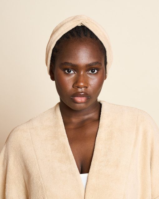 LILOU – the one headband you’ll love. The headband features a little twist in the front and is made out of a super smooth and comfortable 100% organic cotton terry fabric. The headband perfectly matches with the terry robe ESJA and the cosmetic bag TERRY. Everything you need for a matching allover SPA Look. Color: almond.