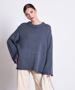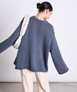 A knit for every seasonThis is SONA, giving us oversized and coziness vibes. It has a tighter, thick neckline and rolled hems. The cut is rather longer and wide and will keep you in comfort whenever needed. The sleeves are also quite wide for an extra cool look.SONA is rather heavy knitted and consists of 100% organic cotton and is GOTS certified, too. Please note:This garment is made of 100% cotton. We try to avoid unnecessary synthetic fibers, such as elastane, wherever possible. That is why this garment might stretch out and change the shape while wearing it. The good news: the style will be back in shape after washing. So, no panic – it’s just organic. Thanks for your understanding, dear!