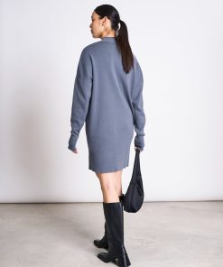 Chic, cozy and warm! Sounds perfect? Meet our knit dress NUNA! NUNA is a short-length dress which comes with a high collar and slight bat sleeves. The dress is oversized on the upper body and tighter at the bottom. The fabric is a 100% heavy organic cotton knit and it’s GOTS certified. Please note:This garment is made of 100% cotton. We try to avoid unnecessary synthetic fibers, such as elastane, wherever possible. That is why this garment might stretch out and change the shape while wearing it. The good news: the style will be back in shape after washing. So, no panic – it’s just organic. Thanks for your understanding, dear!