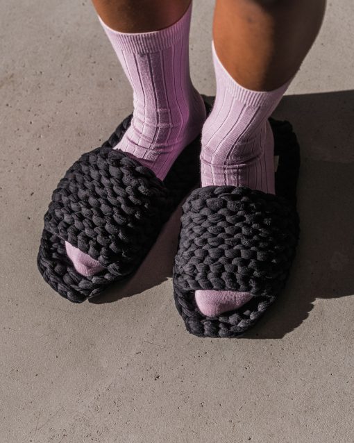 Upcycled to the slipper side of life… are the new Slippers BERLINETTE. For these beauties we teamed up with our friends from Verstrickt Berlin. Together we created these slippers, made of leftover fabrics of old 100% organic cotton sweatshirts – handmade in Berlin.Welcome the new member to our offcut family!Verstrickt Berlin focuses on upcycling old textiles and thereby manufacturing new favorite pieces by hand in Berlin. We love u0026lt;3