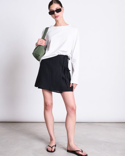 Wrap it, Rock it!Effortlessly chic, this linen wrap skirt features a mid waist and mini length for a flattering silhouette. The tie detail adds a touch of playfulness. Made from 100% European linen fabric, The material has the awesome features of linen, such as a firm grip but still a high comfort and air permeability.Please note: our linen items may have slight thickening or small knots in some places. These natural irregularities are not quality defects, but typical characteristics of linen fibers and underline the authentic character of the material.