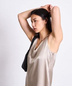 all dressed up…without any effort. Meet BENVIE, the flowy ankle-length dress which is cut very loose, features a deep v-neck in the front and back, wider straps and a oversized cut. BENVIE is your faithful companion for summer weddings, dances at the beach or whatever you’re up to this summer. You could even wear it on colder days with a turtleneck underneath.This chic maxi dress is made from a mix of ENKA® Viscose and Circulose® which gives it its unbeatable shine and flow. Almost like silk, but make it vegan.Please note: If in doubt, take one size smaller!