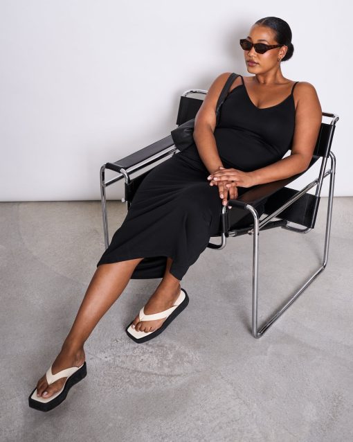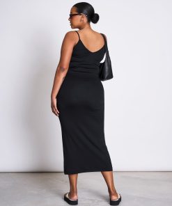 A second skin… in form of a dress. A very sexy dress which is called MELVAIG. It is cut very tight and features spaghetti straps and a V-neck. The dress is midi-length.MELVAIG is made of a mix of Lyocell, organic cotton and a bit of elastane. So it stays breathable and adapts to your body form.