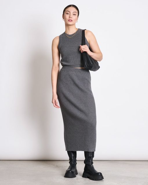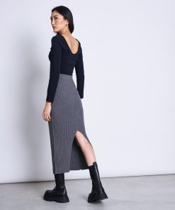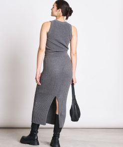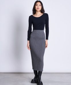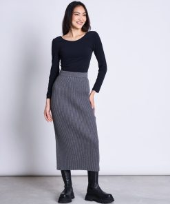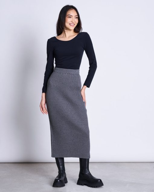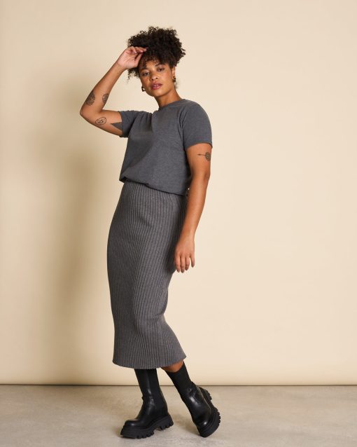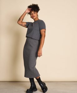 BEST SELLING SKIRTHi EBBA! The skirt has a ribbed texture and a rather tight fit. It features an elastic waistband for the comfort and is midi-length and rather high waisted. The slit in the back is not only for your own mobility but also functions as a nice little fashion twist.Wear it with a casual cropped jumper or spice up a white tee with this midi skirt. EBBA is not only your companion for spring and summer. It’s the perfect skirt for layering in fall and winter too.EBBA is made of 100% organic cotton. Please note that it might stretch out and change the shape while wearing it. The good news: the style will be back in shape after washing. So, no panic – it’s just organic.