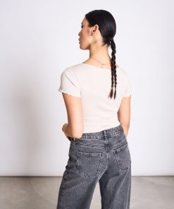 Introducing our minirib T-shirt REN – a playful take on the classic T-shirt. Made from 100% GOTS-certified cotton, its thin rib structure feels super soft on the skin. The T-shirt has a slightly cropped fit and features cute scalloped hems. We love it!