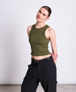 We love Porto!Get ready to fall in love with our slightly cropped tank top PORTO! PORTO has a high round neck and is not transparent.The material is made of ribbed organic cotton jersey. The fabric is rather firm, but still super comfy and adapts to your body shape.