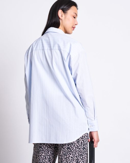 jan-n-june Women’s Oversized Shirt Mamro Blue White Striped Gots