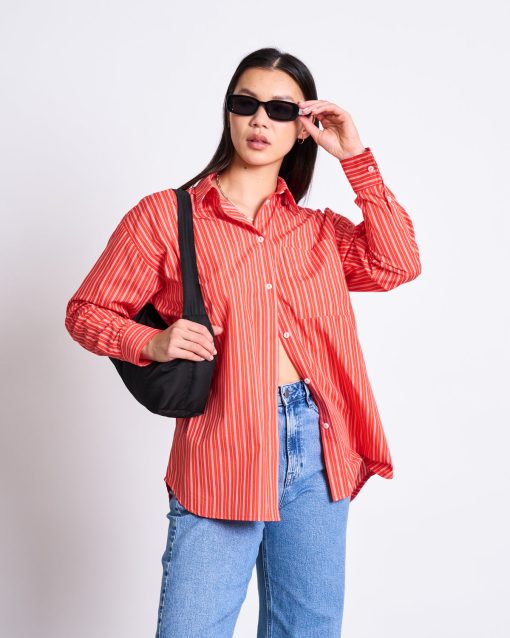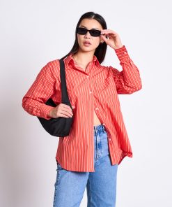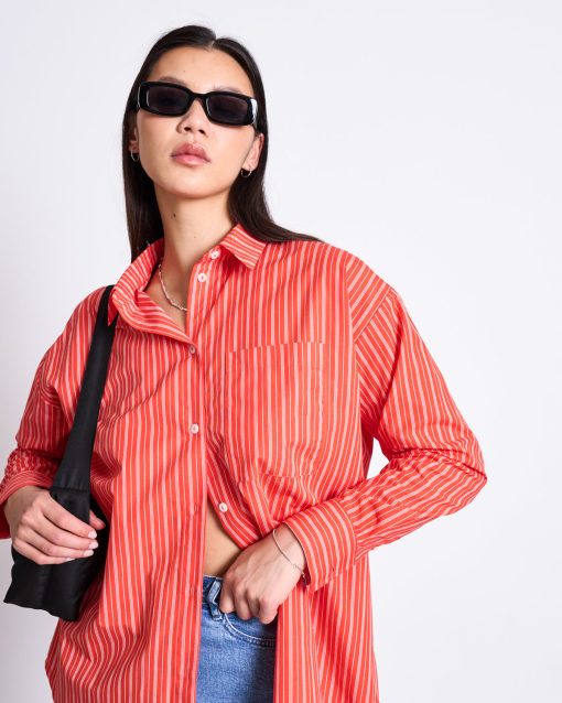 The striped oversized shirt Our gorgeous shirt MAMRO is made in Poland, therefore its name is inspired by the the Polish lake Mamry.MAMRO is a classic button down shirt with a collar, a patch pocket and cuffs with buttons. It is made of a light organic cotton and has a quite oversized fit. Please note: This is an oversized fit. If in doubt, take one size smaller.