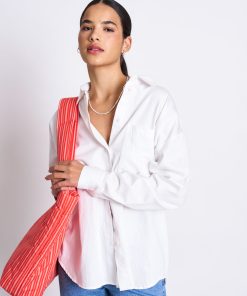 The striped oversized shirt Our gorgeous shirt MAMRO is made in Poland, therefore its name is inspired by the the Polish lake Mamry.MAMRO is a classic button down shirt with a collar, a patch pocket and cuffs with buttons. It is made of a light organic cotton and has a quite oversized fit. Please note: This is an oversized fit. If in doubt, take one size smaller.