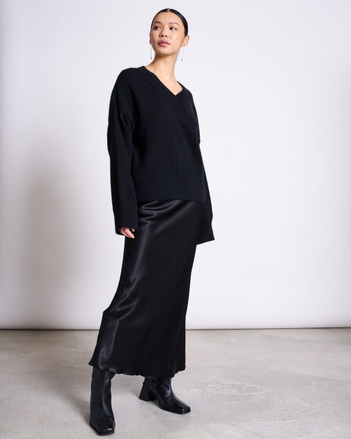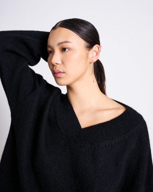 Stay warm and stylish with our OVERSIZED REC. MOHAIR V-NECK JUMPER YICA.This sweater features a trendy v-neck, has a regular length, overlapping shoulders, slightly longer sleeves and will keep you cozy all winter long. Upgrade your wardrobe with this must-have piece! Because of the recycled Mohair it is extra fluffy and light. The knit yarn is made out of a mix of 50% Mohair and 50% Wool. Super warm and cozy!