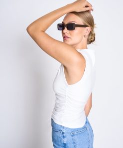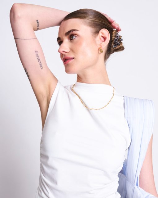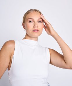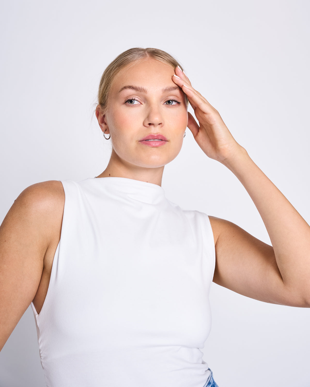 RUFFLES, BUT MAKE THEM MINIMALLet’s be real—who doesn’t love ruffles? Meet our sleeveless ruffle top, RAFO! With ruffles on both sides, a high neckline, and a slightly stand-up collar, it makes everyone look gorgeous. The length is somewhere between regular and a bit shorter. Made from our signature ultra-soft and slightly elastic organic cotton jersey, which our supplier calls ‘Angel Skin.’ You’ll understand why as soon as you feel it.