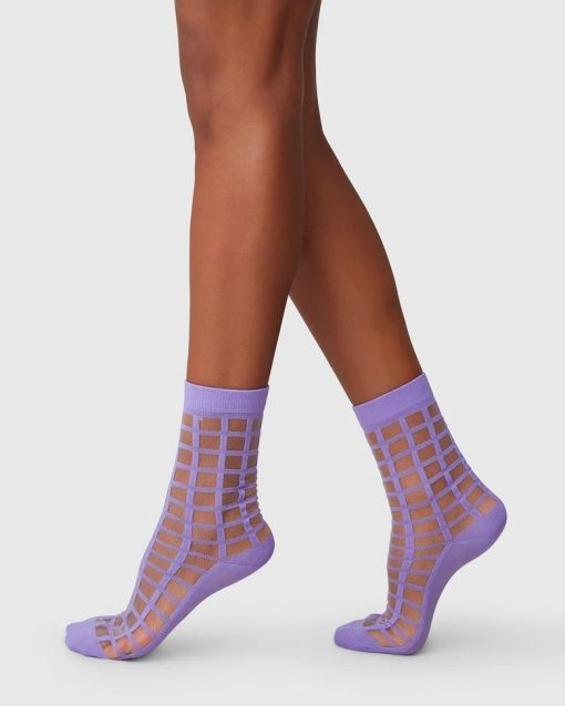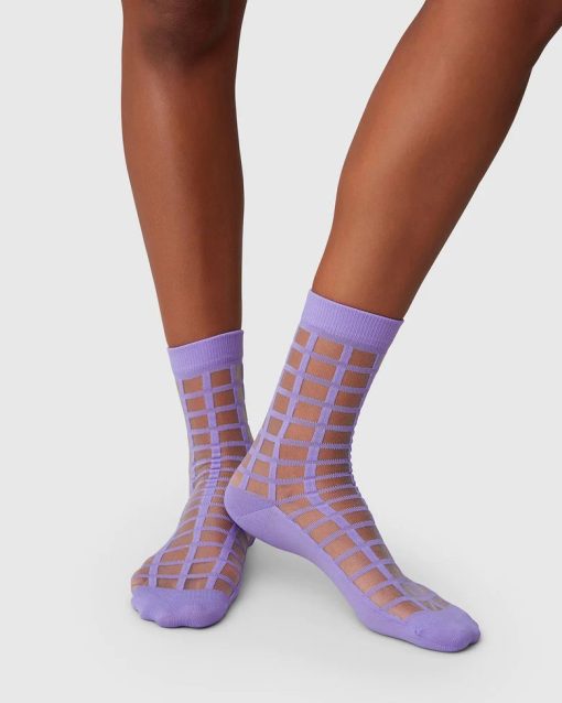 jan-n-june Women’s Swedish Stockings Socks Alicia Grid Lavender