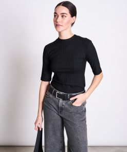 T-shirt with a storySo, here’s why this T-shirt is called NINA: Our dear friend Nina – who, by the way, owns an amazing jewelry brand – was wearing a T-shirt with a little turtleneck. We fell in love with it and wanted to create something similar. Therefore, we proudly present T-shirt NINA.It’s made from a flexible and comfy TENCEL™ Lyocell rib fabric that adapts perfectly to your body shape. NINA features a tiny turtleneck, is quite fitted and has sleeves that end just before the elbow. The material is slightly transparent, so a thin bralette might be helpful if needed. The fabric is ribbed, and its feel is ultra-soft and flowy. Complete NINA with…- pants SMILLA