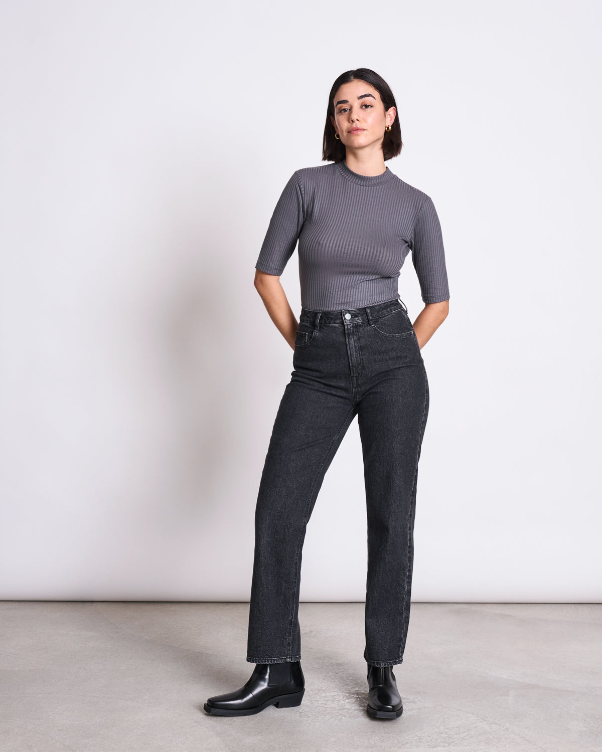 T-shirt with a storySo, here’s why this T-shirt is called NINA: Our dear friend Nina – who btw owns an amazing jewelry brand – was wearing a T-shirt with a little turtle neck. We fell in love and wanted to make something similar.Therefore, we proudly present T-shirt NINA. It is made from a flexible and comfy TENCEL™ Lyocell rib fabric which adapts to your body shape perfectly. NINA has a tiny turtle neck, is quite fitted and has sleeves that end just before the elbow.The material is slightly transparent, so a thin bralette might be helpful, if needed. The fabric is ribbed and its handle is super soft and flowy.